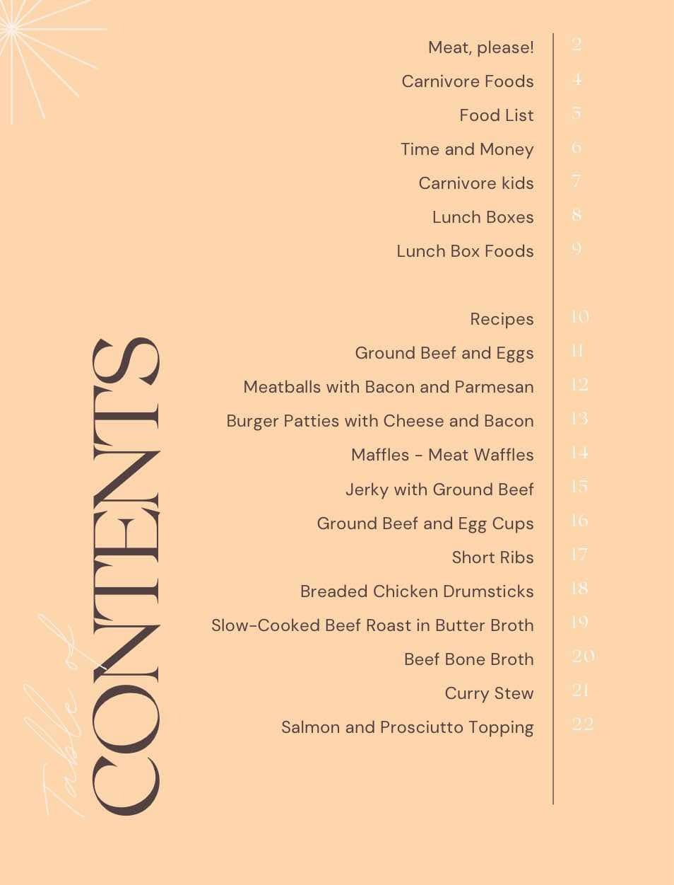 In this small and easy cookbook you find both practical tips to help you save time and money, creative ideas for lunchbox-friendly carnivore meals, and strategies for making carnivore eating work for the whole family. Inside, you’ll find an inspiring collection of recipes—ranging from quick and simple dishes to more elaborate ones—designed to be cost and family friendly.